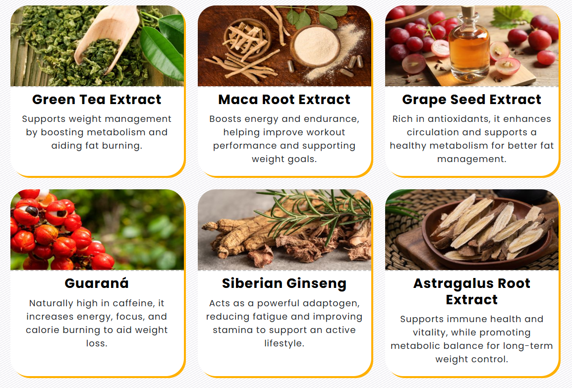 🧪 Guaraná – Naturally high in caffeine, it enhances focus, energy, and calorie burning, making it easier to stay active and accelerate weight loss.